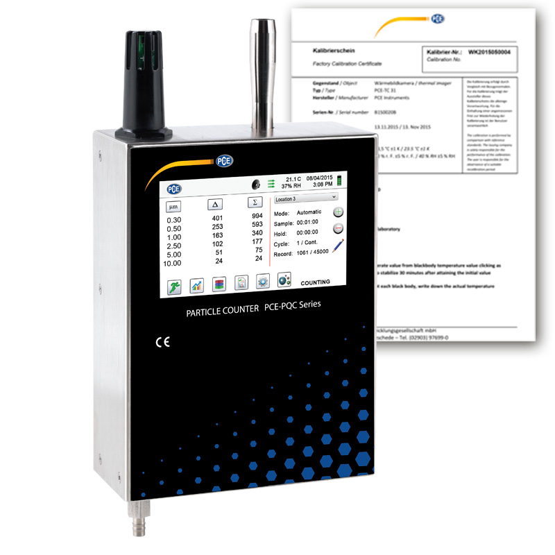 Partikül ölçüm cihazı PCE-PQC 32EU, piyasadaki en gelişmiş partikül ölçüm cihazıdır. Ethernet ya da (opsiyonel) Wireless 802.11 b / g, RS485 ya da RS232 üzerinden bina otomasyonu ve temiz oda yönetim sistemine entegrasyon mümkündür. Partikül ölçüm cihazının seçilebilir 6 ölçüm kanal boyutu ve (opsiyonel) sıcaklık ve bağıl nem sensörü bulunur.