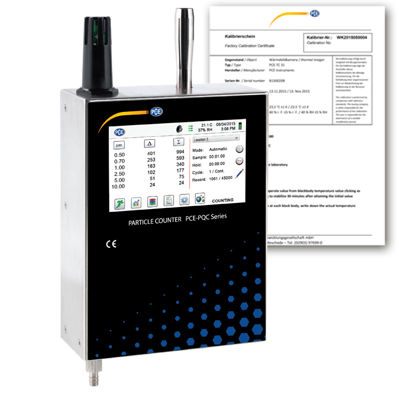 Partikül ölçüm cihazı PCE-PQC 33EU, piyasadaki en gelişmiş partikül ölçüm cihazıdır. Ethernet ya da (opsiyonel) Wireless 802.11 b / g, RS485 ya da RS232 üzerinden bina otomasyonu ve temiz oda yönetim sistemine entegrasyon mümkündür. Partikül ölçüm cihazının seçilebilir 6 ölçüm kanal boyutu ve (opsiyonel) sıcaklık ve bağıl nem sensörü bulunur.